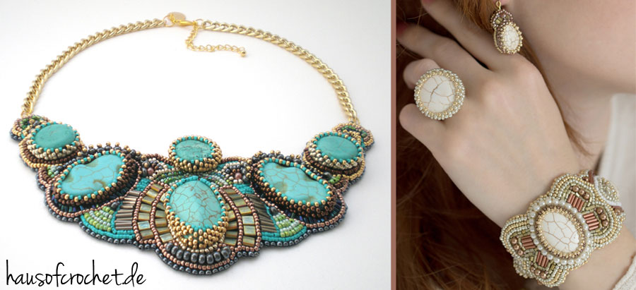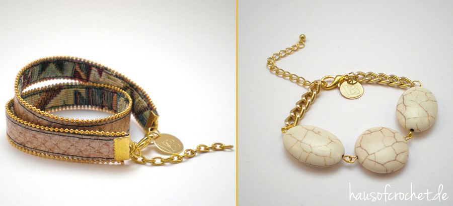 Der Stil meines Labels besteht aus dem Reiz der Gegensätzlichkeiten. Dabei verknüpfe ich verschiedene Stilrichtungen, wie etwa meine Stoff- und Lederarmbänder, die unter die Rubrik Festival-Style fallen würden, mit opulenten Perlenstickereien, wobei sehr interessante neue Kombinationen entstehen. Meinen Stil würde ich daher als eine Mischung aus lässig und extravagant bezeichnen, immer mit dem gewissen Etwas und viel Liebe zum Detail! Ich persönlich trage gerne viel und vor allem großen Schmuck, kann aber verstehen, wenn es jemand anders handhabt. Daher ist es mir wichtig, sowohl schlichte als auch sehr auffällige Dinge anzubieten, um ein großes Spektrum zu erreichen und eine Vielfalt an Kombinationen zu bieten!