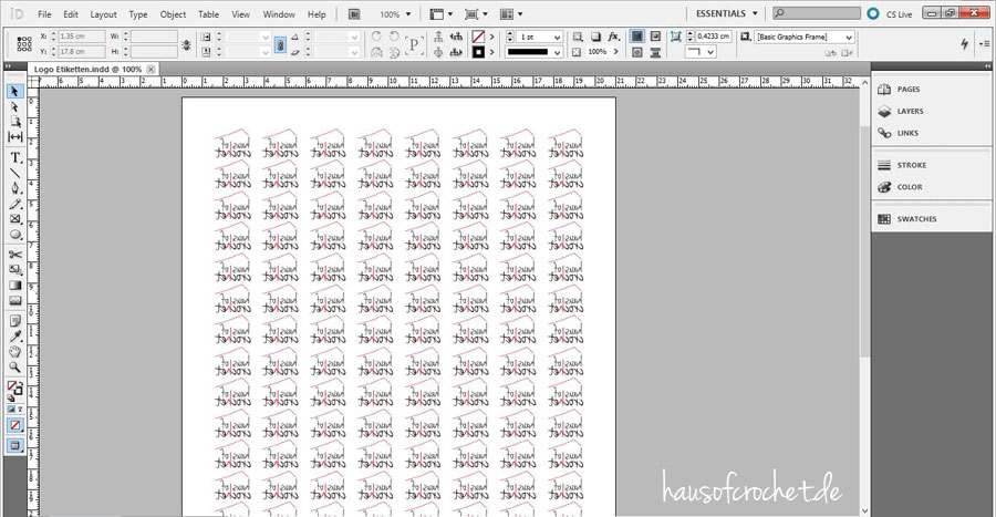 Zunächst einmal benötigst du ein Design, welches du auf deine Etiketten aufdrucken möchtest. Dies kann dein Logo sein, aber auch ein lieber Spruch eignet sich gut, um ein Geschenk zu personalisieren. Mithilfe eines Grafikprogramms (oder notfalls auch mit Word) musst du dieses Design nun so in der richtigen Größe anordnen, dass es von der Höhe her auf dein Baumwollband passt. Versuche sparsam mit deinem Platz umzugehen, um die Bügelfolie möglichst gut auszunutzen. Beachte, dass dein Logo hierbei spiegelverkehrt angeordnet sein muss, damit es später richtig zu lesen ist! Wenn du deine Etiketten mit Materialangaben versehen möchtest, gehst du genauso noch einmal vor. Denke auch hier daran, die Schrift zu spiegeln.