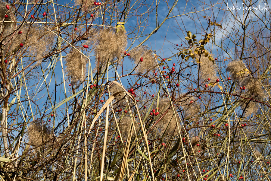 Doch auch die Natur, welche den See umgibt, ist äußerst sehenswert. Im November ergab sich hier beispielsweise ein eindrucksvolles Farbenspiel zwischen roten Hagebutten, hellem Schilft und blauem Himmel.